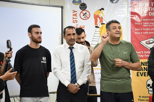 كما قدّم الفلاحي محاضرة توعوية لطلبة الكلية تناولت مخاطر التعاطي وأهمية تعزيز الوعي الوقائي بين الشباب، وذلك بحضور عميد الكلية و المعاون العلمي و مسؤول وحدة الإرشاد النفسي في الكلية وعدد من التدريسيين.